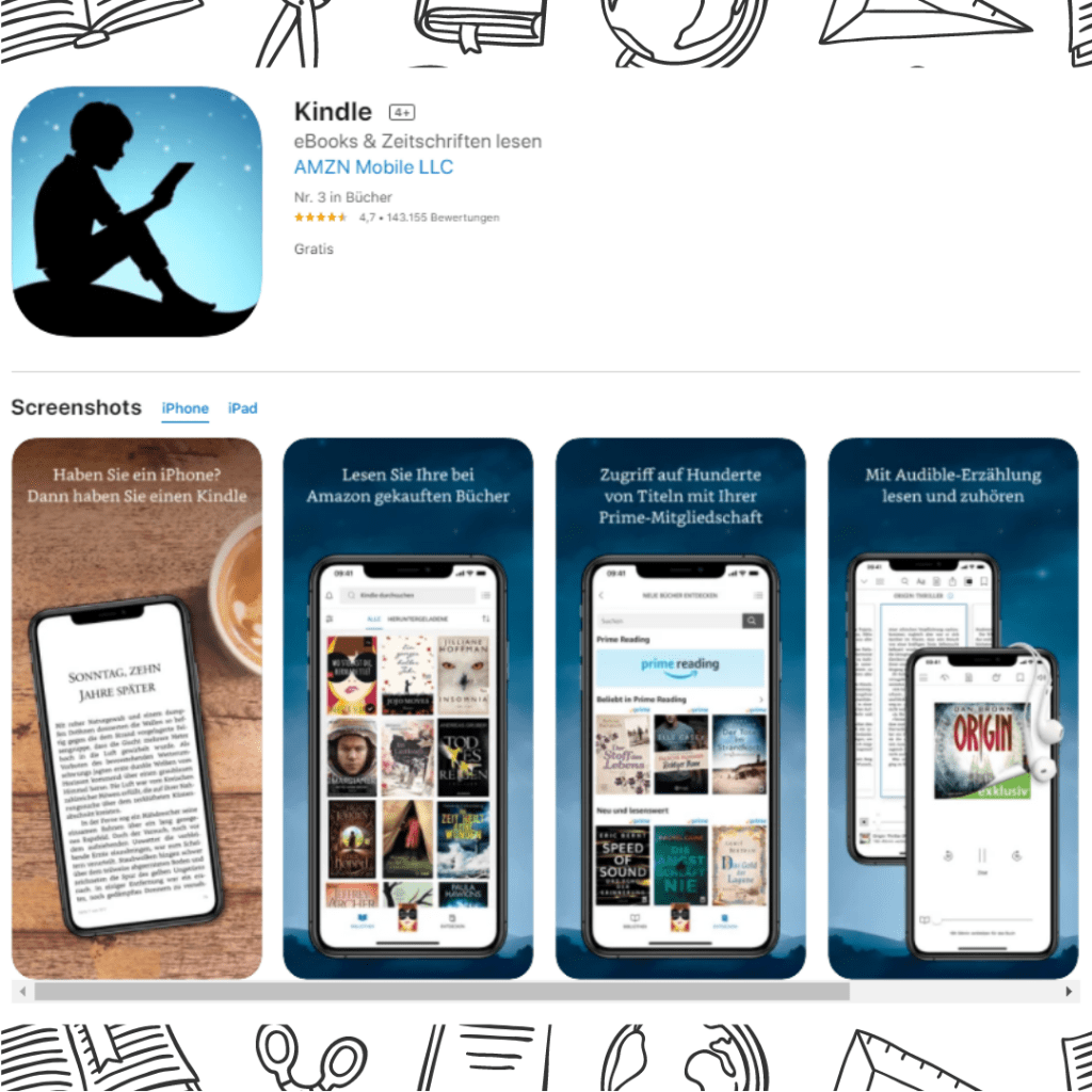 Kindle wird jeden Bücherwurm zufriedenstellen. Die App bietet über eine Million kostenlose E-Books, die Ihre Kinder erkunden können. Zusätzlich können Kinder auch ihre Lieblingsbestseller finden, sowie Sachbücher, die Nachschlagewerke und Lehrbücher beinhalten.