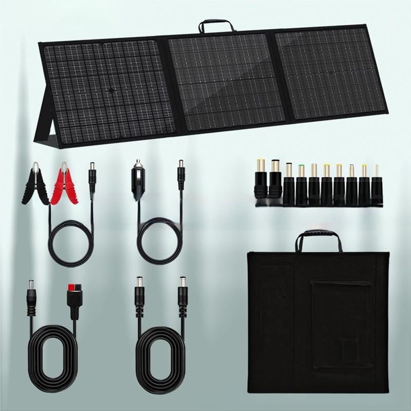 Das tragbare 100-W-Solarpanel-Ladegerät wurde für Outdoor-Abenteuer, Reisen und die Notstromversorgung entwickelt. Es besteht aus hocheffizienten monokristallinen Silizium-Solarzellen und liefert zuverlässige Solarenergie, während es gleichzeitig leicht und einfach zu transportieren ist. Dank seines 3-fach-Designs lässt sich das Panel zu einer großen Ladefläche ausklappen und zur Aufbewahrung kompakt zusammenfalten. Mit mehreren Ausgangsanschlüssen, darunter USB, USB-C und DC, unterstützt es das Laden von Smartphones, Tablets, Kameras, Drohnen und tragbaren Kraftwerken. Die wasser- und staubdichte Konstruktion nach IP65 gewährleistet eine zuverlässige Leistung unter wechselnden Außenbedingungen.