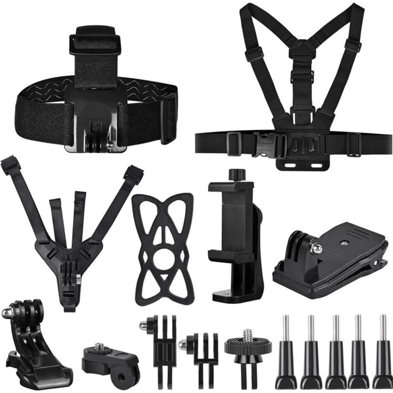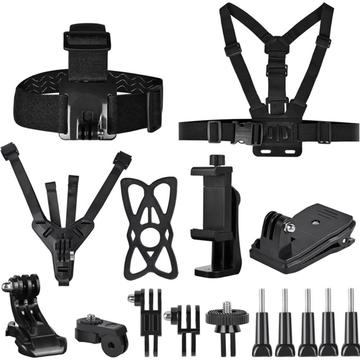 11-in-1-Zubehörset für GoPro-Actionkameras - Kopfband, Brustgurt, Kinnhalterung, Rucksackclip und Handyhalterungsset