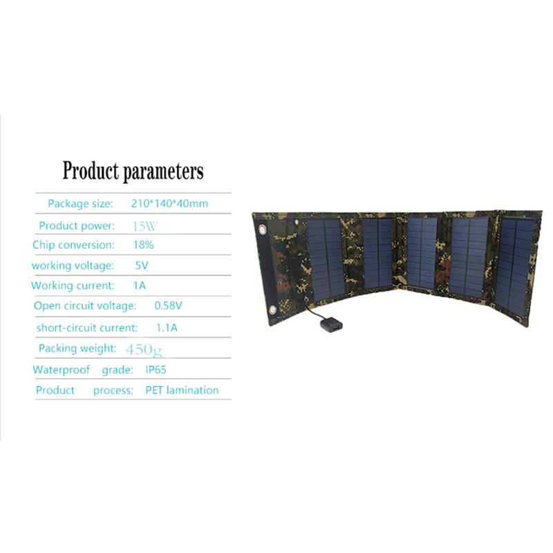 15W faltbares USB-Solarladegerät mit 5 Modulen - tragbares Outdoor-Ladegerät für Mobiltelefone mit monokristallinen Modulen