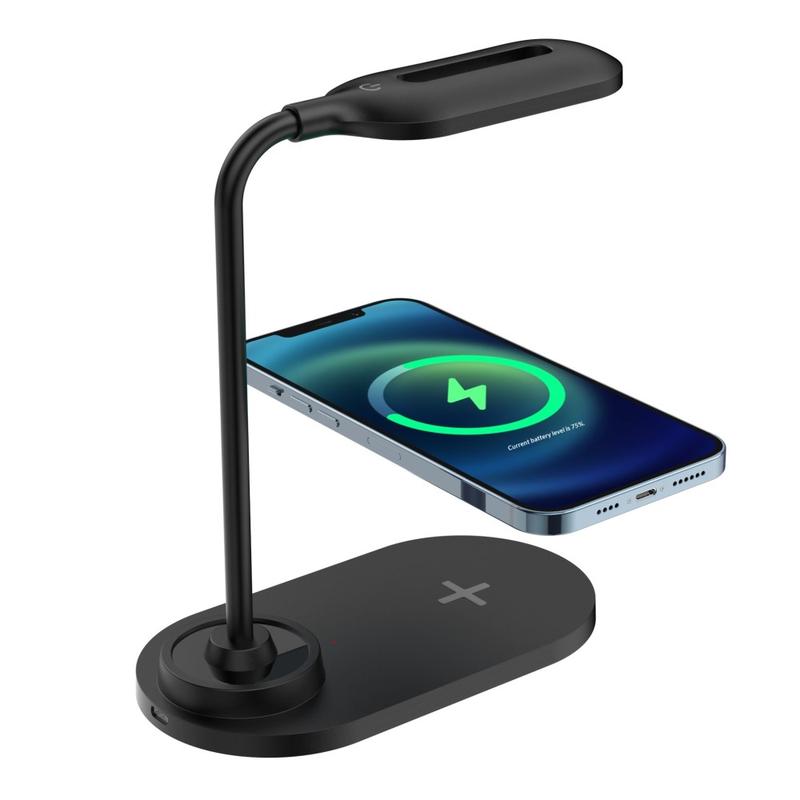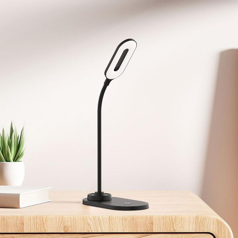 - 2-in-1-Design, das eine LED-Schreibtischlampe und ein kabelloses Ladegerät kombiniert