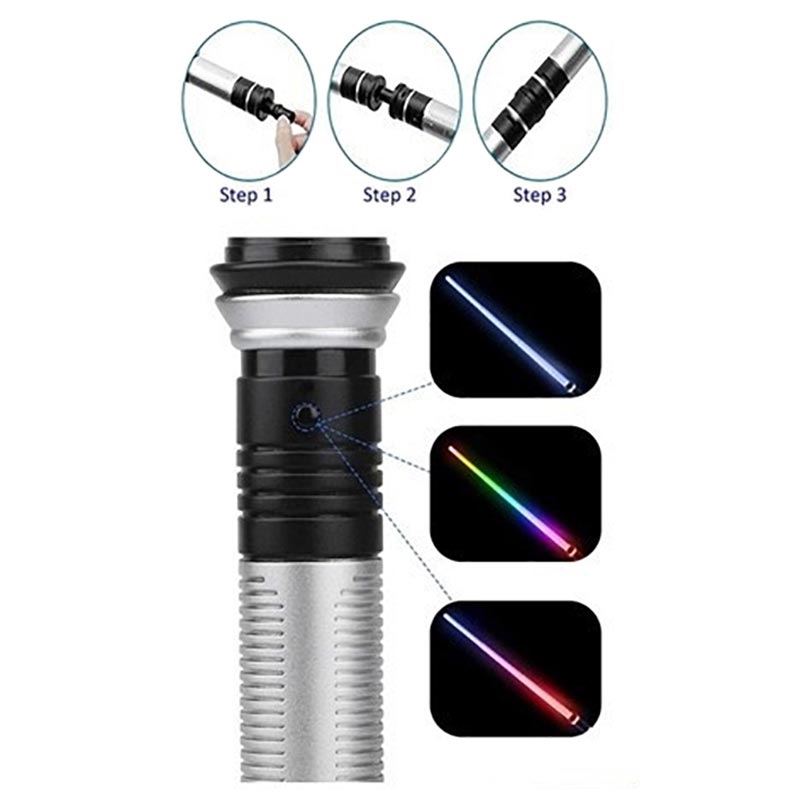 Durchscheinende LED-Safe-Klingen mit detaillierten Designgriffen. realistische Galaxiekrieger spielen