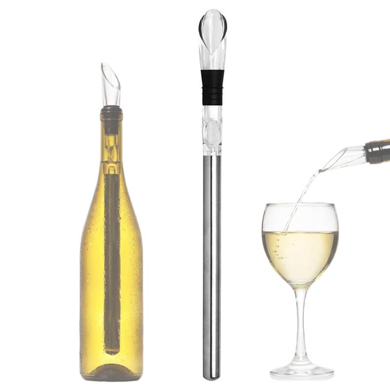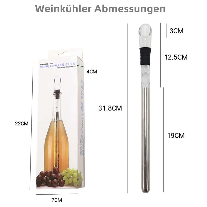3-in-1-Edelstahl-Weinkühlstab - Eisfreier Kühlstab mit Luftsprudler und Ausgießer