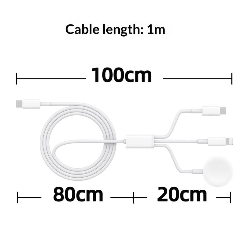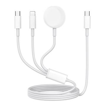3-in-1 USB-C-Ladekabel zu USB-C, Lightning, Apple Watch Wireless Charger - 1m - Weiß