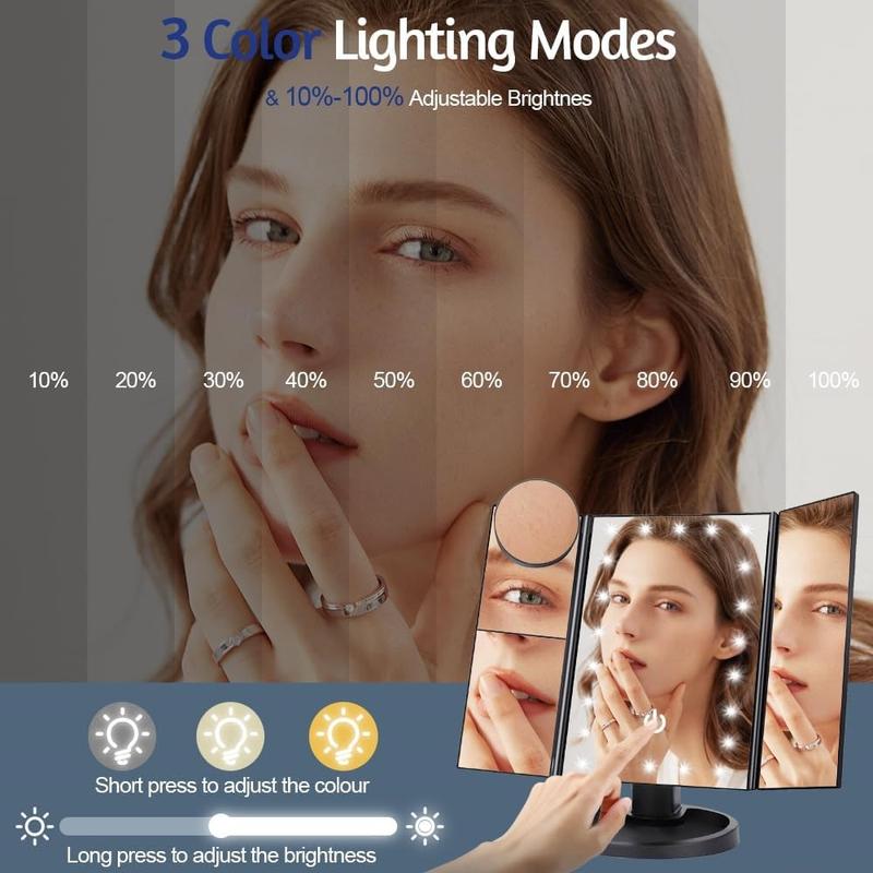 3-seitig klappbarer Schminkspiegel mit 22 LED-Leuchten - 1X/2X/3X/10X Vergrößerungsspiegel für den Kosmetikspiegel