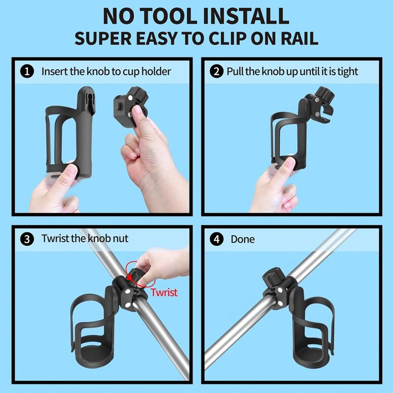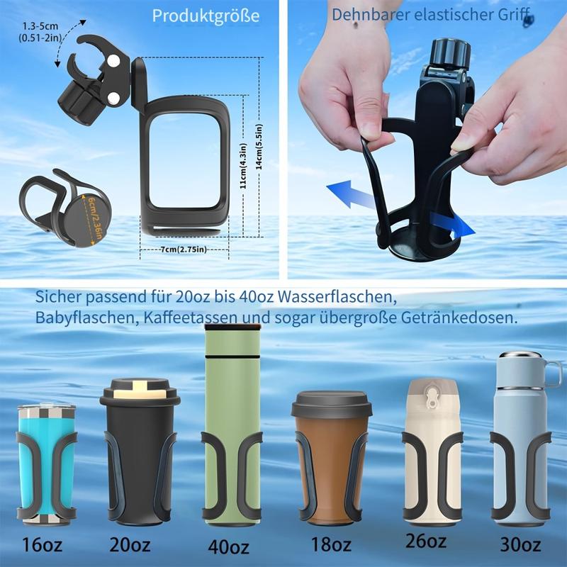 - Kinderwagen: praktische Flaschenhalterung für Eltern auf Spaziergängen (je nach Rohrgröße)