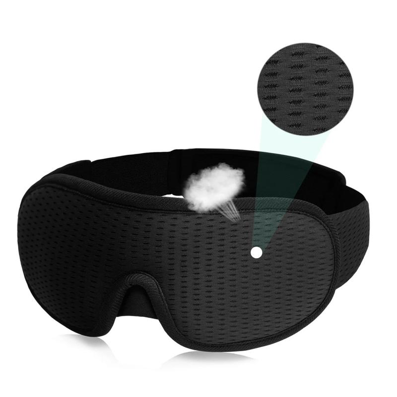 3D-geformte, atmungsaktive Schlafmaske mit verstellbarem Riemen - Schwarz