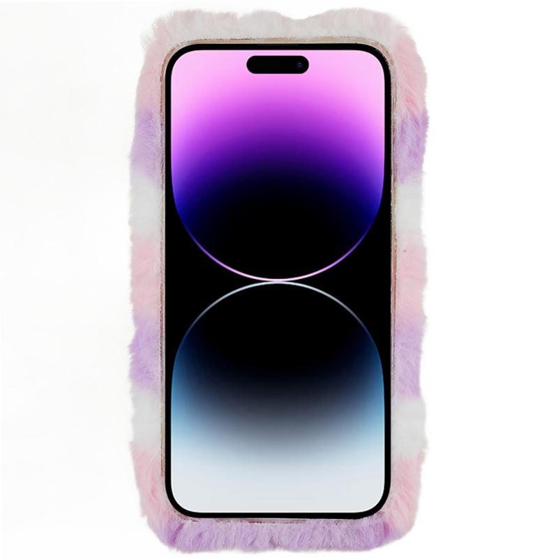 Winterliche pelzige Handyhülle für iPhone 14 Pro, stoßfeste Schutzhülle mit 3D-Plüschpuppe