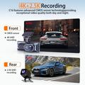 Die 4K-Dual-Lens-Dashcam bietet eine komplette Front- und Heckabdeckung in außergewöhnlicher Klarheit und bietet zuverlässigen Schutz beim Fahren und Parken. Die vordere Kamera zeichnet in echter 4K-Auflösung auf, während die hintere ein detailliertes 2,5K-Video aufnimmt und so sicherstellt, dass jedes wichtige Detail erhalten bleibt. Der extrem weite Blickwinkel von 170° an der Vorderseite reduziert den toten Winkel und sorgt so für ein sicheres Fahrgefühl.