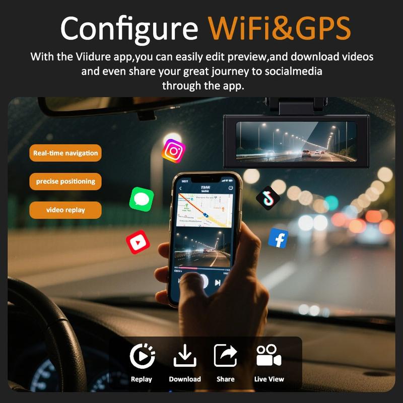 Dank integriertem Wi-Fi können Sie die Dashcam direkt mit Ihrem Smartphone verbinden, um Videodateien sofort wiederzugeben, herunterzuladen oder zu teilen - ohne die Speicherkarte herausnehmen zu müssen. Das integrierte GPS-Modul zeichnet Fahrtrouten und Standorte auf und liefert präzise Kartendaten für die Dokumentation von Fahrten oder die Überprüfung von Unfällen. Die ADAS-Fahrerassistenz sorgt mit intelligenten Warnhinweisen für zusätzliche Sicherheit und fördert eine vorsichtige Fahrweise.