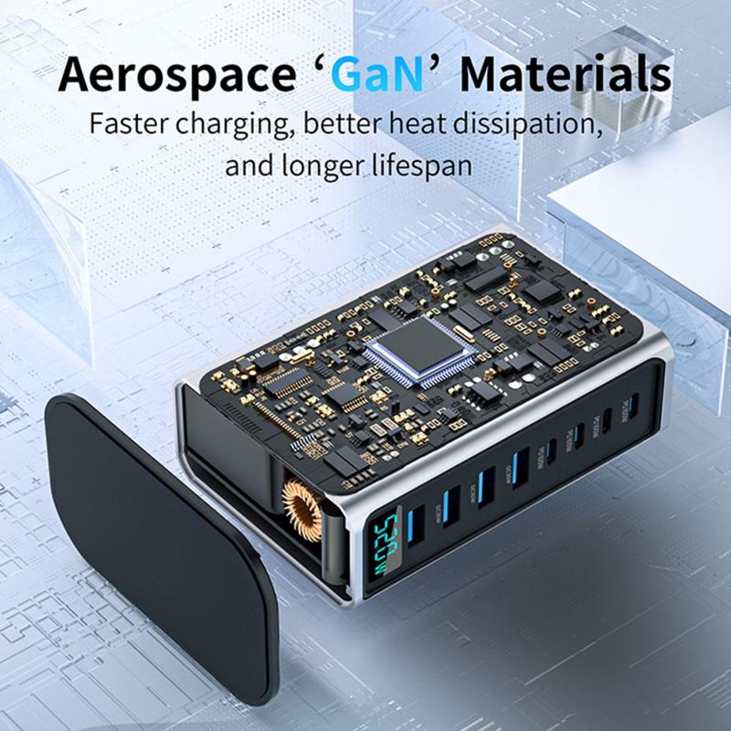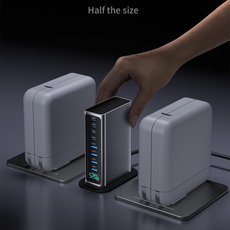 520W GaN 5.0 Desktop-Ladestation mit digitaler Leistungsanzeige - 8 Ports (4x USB-C bis zu 100W + 4x USB-A) Schnellladegerät, PPS/PD/QC
