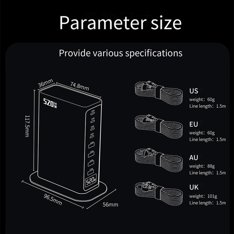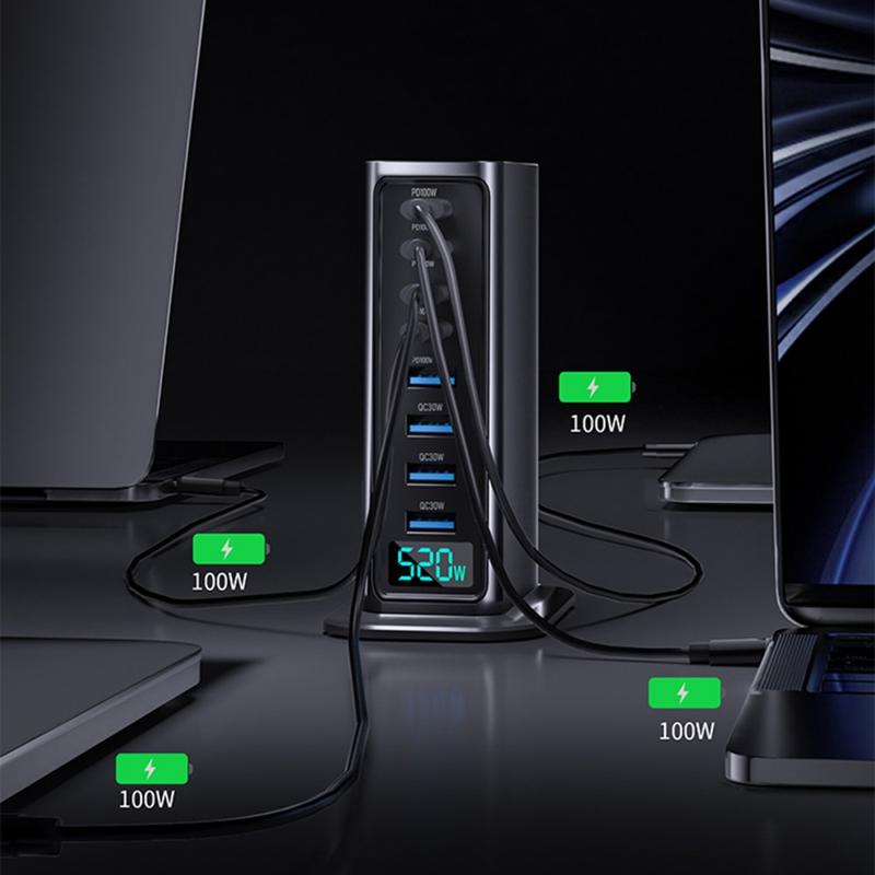 Wenn Sie eine einzige, zuverlässige Ladelösung suchen, die einen ganzen Stapel von Adaptern ersetzen kann, ist dieses Produkt genau das Richtige. Die Kapazität von 520W und die Anordnung der 8 Anschlüsse sind für Menschen mit vielen Geräten gedacht, während die digitale Anzeige für echte Benutzerfreundlichkeit sorgt - so können Sie schnell sehen, was passiert, ohne raten zu müssen. Es ist ein praktisches Upgrade für alle, die Wert auf einen aufgeräumten Schreibtisch, weniger Steckdosen und schnelles Aufladen verschiedener Gerätetypen legen.