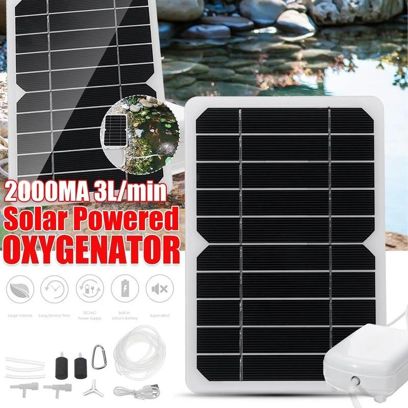 • 5W-Solarpanel mit Sauerstoffpumpe / Set für die Belüftung von Aquarien und zum Angeln im Freien - 3 l/min, Batterie-Backup