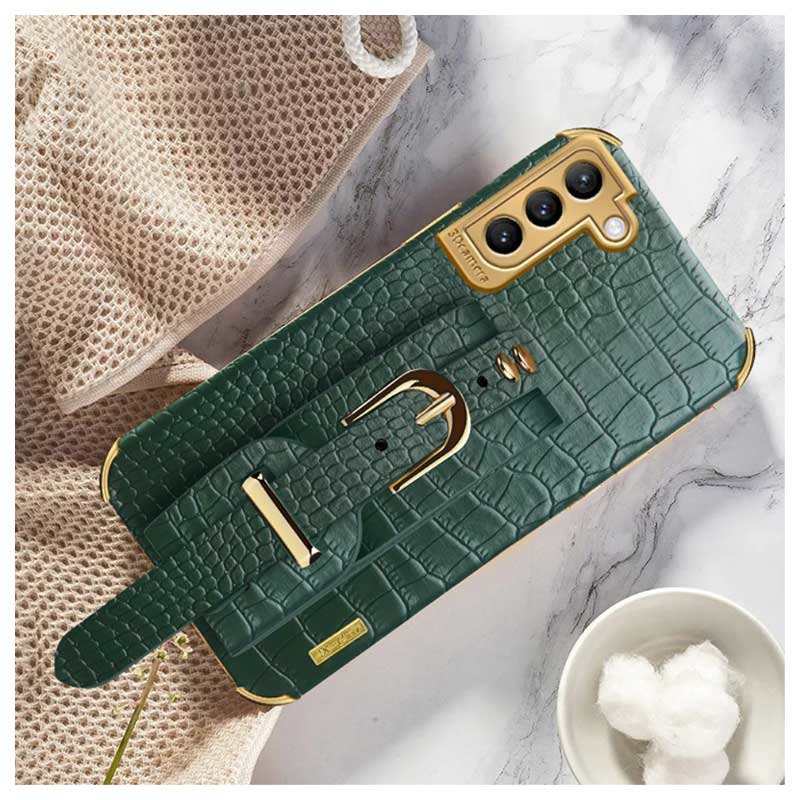 - 6D Krokodil-Hybridhülle mit Handschlaufe für Samsung Galaxy S21 5G