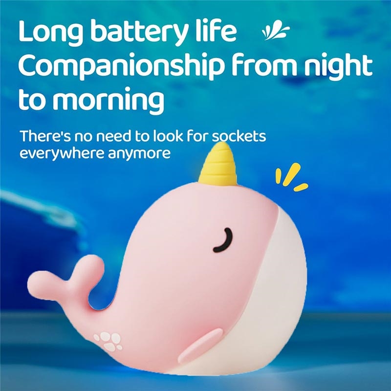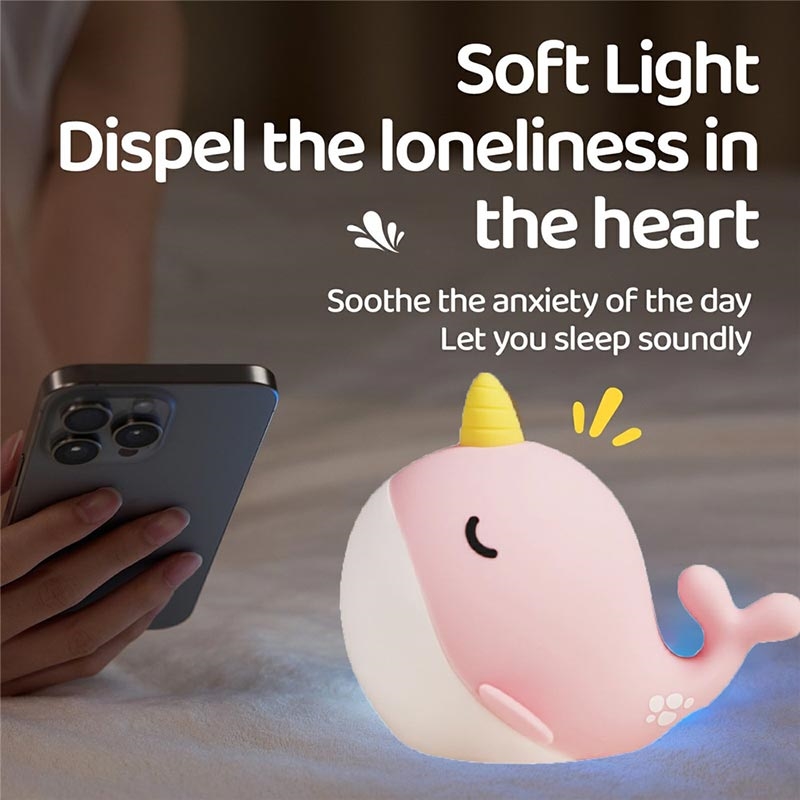 A044 Narwal-Silikon-Nachtlicht - Tippsteuerung, USB-C wiederaufladbar & sanftes Umgebungslicht