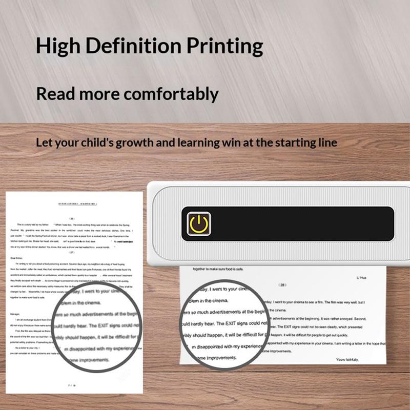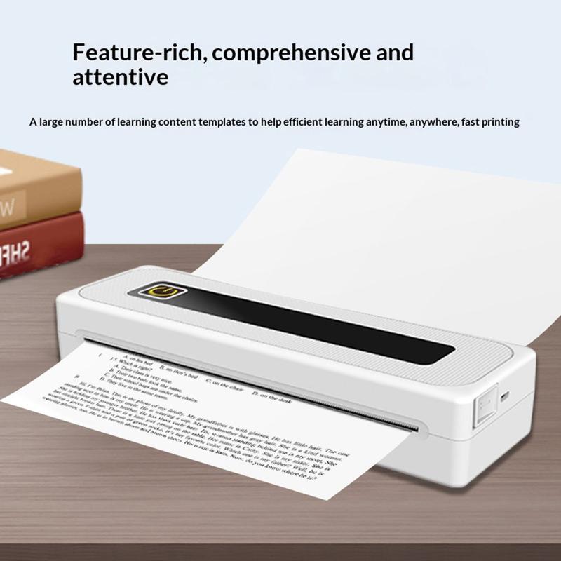 Dank der Thermodrucktechnologie liefert der A4B saubere und gut lesbare Ergebnisse, reduziert den Wartungsaufwand und sorgt für eine einfache Bedienung. Durch sein tragbares Design lässt er sich leicht im Rucksack transportieren oder von Raum zu Raum mitnehmen, was besonders für Studenten, mobile Berufstätige und Privatanwender mit begrenztem Platz auf dem Schreibtisch nützlich ist. Mit Unterstützung für die iPrint-App bewältigt dieser kabellose Drucker eine Vielzahl alltäglicher Aufgaben, darunter den Druck von Texten, Webseiten, Fotos, Materialien, Bannern und Etiketten.
