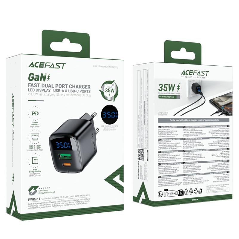 Acefast A116 GaN 35W Dual-Port Schnellladegerät mit LED-Leistungsanzeige