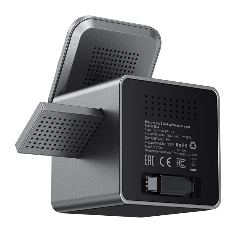 Acefast E34 3-in-1 Magnetische kabellose Ladestation mit elektrischem Flip für Smartphone, Smartwatch & Kopfhörer - 15W, 5W, 2.5W