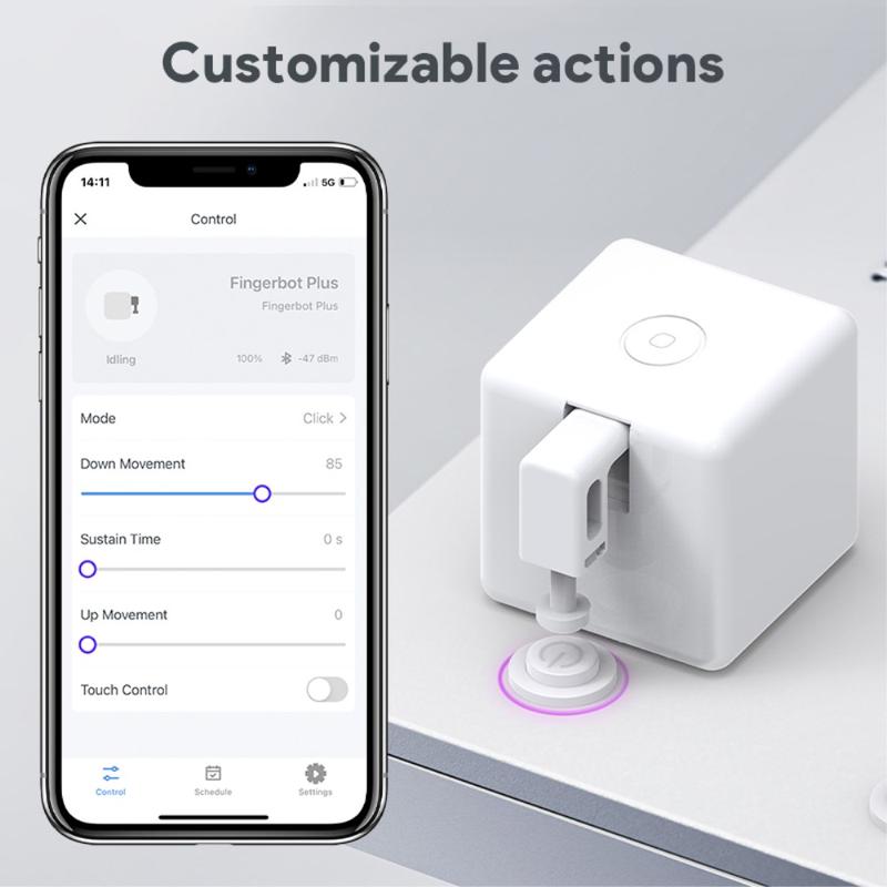 Der Fingerbot Plus kann praktisch jedes Gerät mit einer physischen Taste automatisieren - von Kaffeemaschinen und Klimaanlagen bis hin zu Wandschaltern und Desktop-Elektronik. Sein Präzisionsmotor und die anpassbare Tastendistanz machen ihn an unzählige Anwendungsfälle anpassbar und schließen die Lücke zwischen traditionellen Geräten und moderner Smart-Home-Technologie.