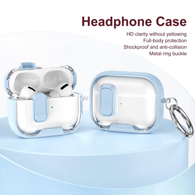 AirPods Pro 2 Hybrid-Schutzhülle mit Verschluss und Haken - Hellblau / Durchsichtig