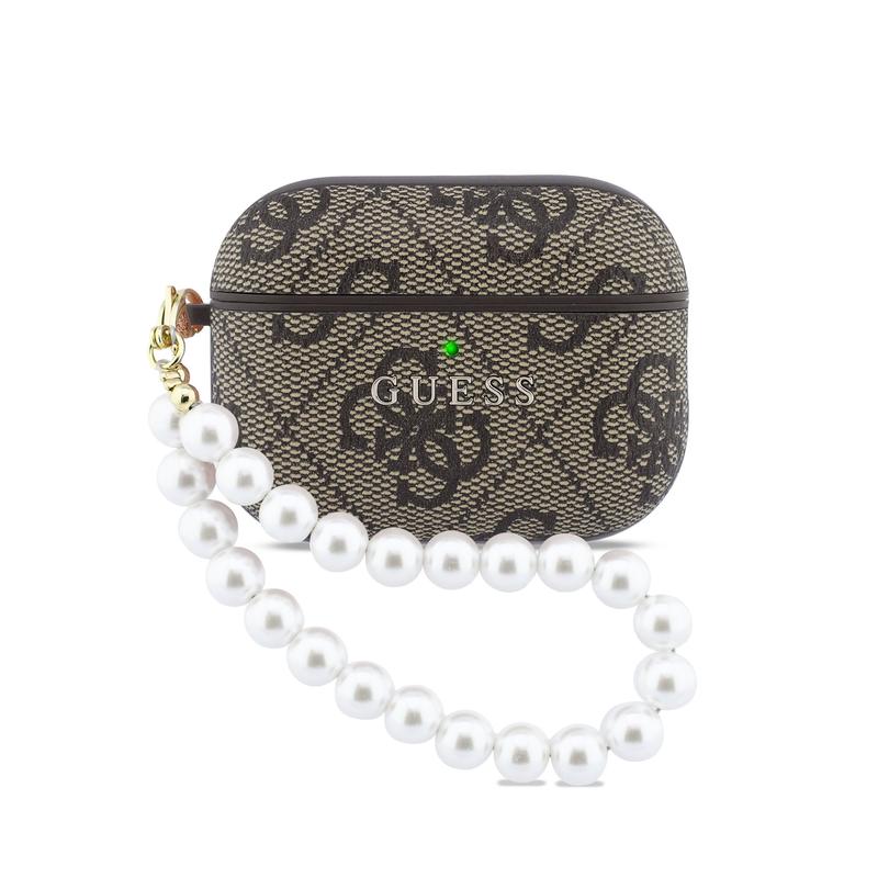 AirPods Pro 3 Guess 4G Classic Logo Hülle mit Perlenriemen - Braun