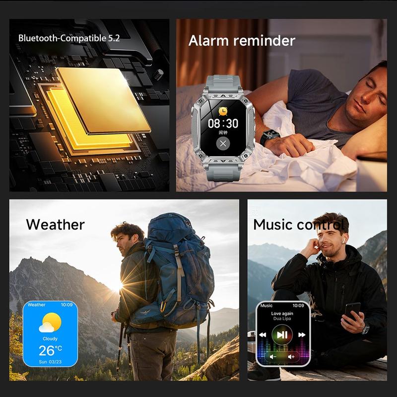 Die AK86 Smartwatch kombiniert ein großes, gut lesbares Display mit fortschrittlichen Gesundheitsfunktionen und Bluetooth-Telefonie und ist damit ein praktischer Begleiter für Arbeit, Sport und Freizeit. Der 2,01 Zoll große HD-Bildschirm mit einer Auflösung von 320 x 385 Pixeln liefert klare Bilder, während eine flüssige Benutzeroberfläche mit Drag-and-Drop-Navigation und einem schnell zugänglichen Kontrollzentrum für intuitive Bedienung sorgt. Angetrieben vom 8773EWE-Chip mit 128 MB Speicher und Bluetooth 5.2 bietet die Uhr eine stabile Leistung und zuverlässige Konnektivität. Mit ganztägiger Herzfrequenzmessung, Blutsauerstoffüberwachung, über 100 Sportmodi und einem leistungsstarken 1400-mAh-Akku ist sie für Nutzer konzipiert, die eine lange Akkulaufzeit und umfangreiche Funktionen in einem Wearable wünschen.