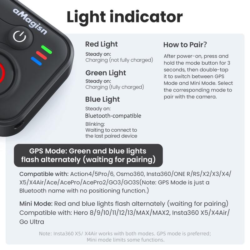 - Breite Kompatibilität - funktioniert mit iOS- und Android-Smartphones und unterstützt Insta360-, GoPro Hero- und DJI-Actionkameras
