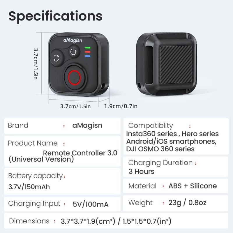 Amagisn Universal-Bluetooth-Fernbedienung für iOS- und Android-Smartphones, Insta360-, GoPro Hero- und DJI-Actionkameras - Ein-Knopf-Steuerung für Fotos und Videos