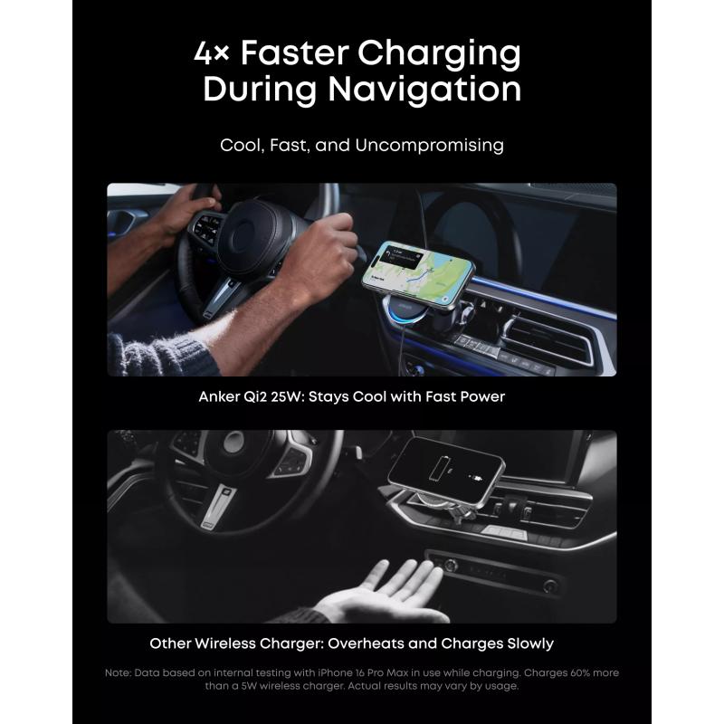 • Anker Prime Qi2 MagGo 25W MagSafe kabelloses Ladegerät / Autohalterung mit TEC-Kühlung