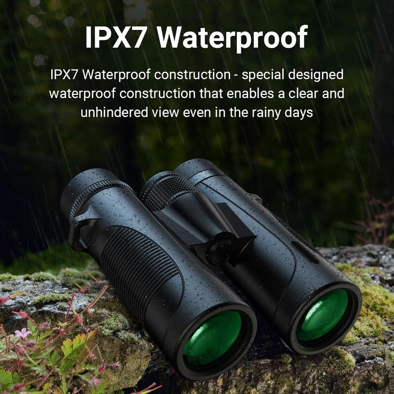 - IPX7-Ferngläser können versehentlichem Untertauchen und starkem Regen standhalten