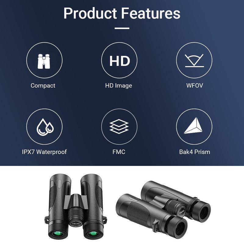 • Apexel 10x42 HD Wasserdichtes Fernglas - FMC-Mehrschichtvergütung, BAK4-Prisma, Sicht bei schwachem Licht für Vogelbeobachtung, Jagd und Outdoor-Einsatz