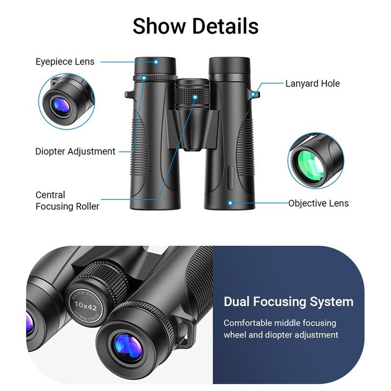 - 10x42-Hochleistungsvergrößerung mit heller, scharfer HD-Abbildung