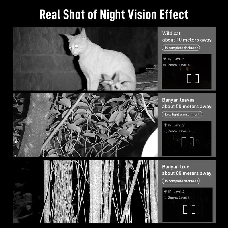 - Nächtliche Wildtierbeobachtung: Studieren Sie nächtliche Lebewesen in aller Ruhe, ohne ihren Lebensraum zu stören, selbst auf große Entfernungen.