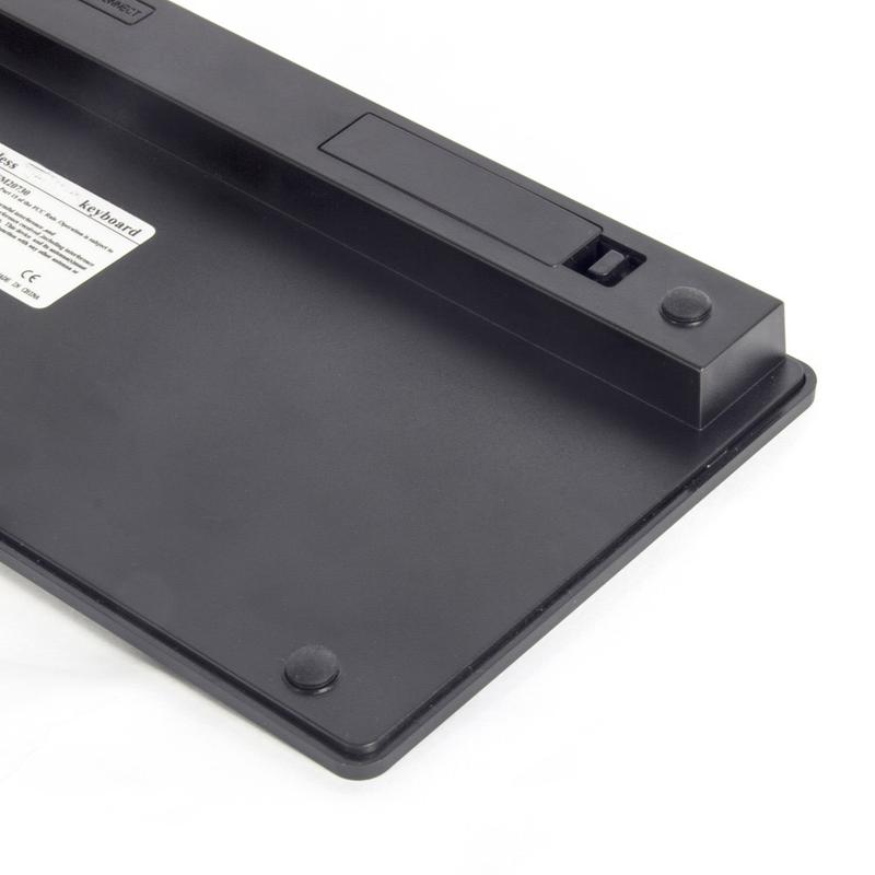 Die Tastatur wird mit 2 × AA-Batterien (nicht im Lieferumfang enthalten) betrieben und bietet eine lange Batterielebensdauer, ohne dass Ladekabel benötigt werden.