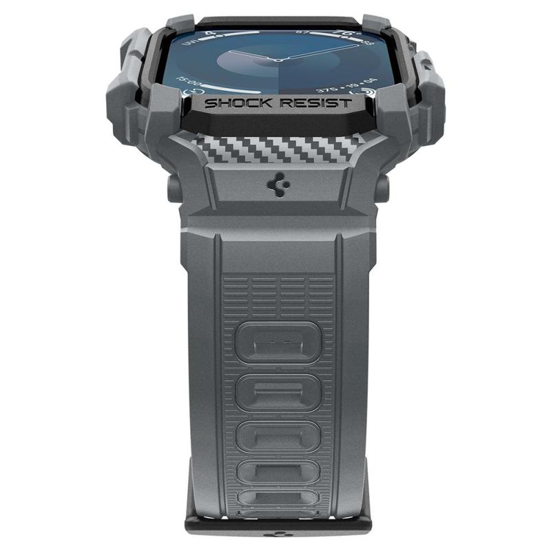 Mit dem neuen Schutzschild von Spigen für Ihre Apple Watch Series 11/10 gehen Sie gut vorbereitet in Ihr tägliches Abenteuer. Das Rugged Armor Pro-Gehäuse mit Band besteht aus stoßabsorbierendem TPU-Material mit Karbonfaser-Akzenten und einem modernen, robusten Design, das für alle Gelegenheiten und Wetterbedingungen geeignet ist. Darüber hinaus ist das verstellbare, flexible Band sanft zur Haut, während das formschlüssige TPU-Gehäuse den einfachen Zugriff auf alle Funktionen Ihrer Apple Watch Series 11/10 bewahrt.