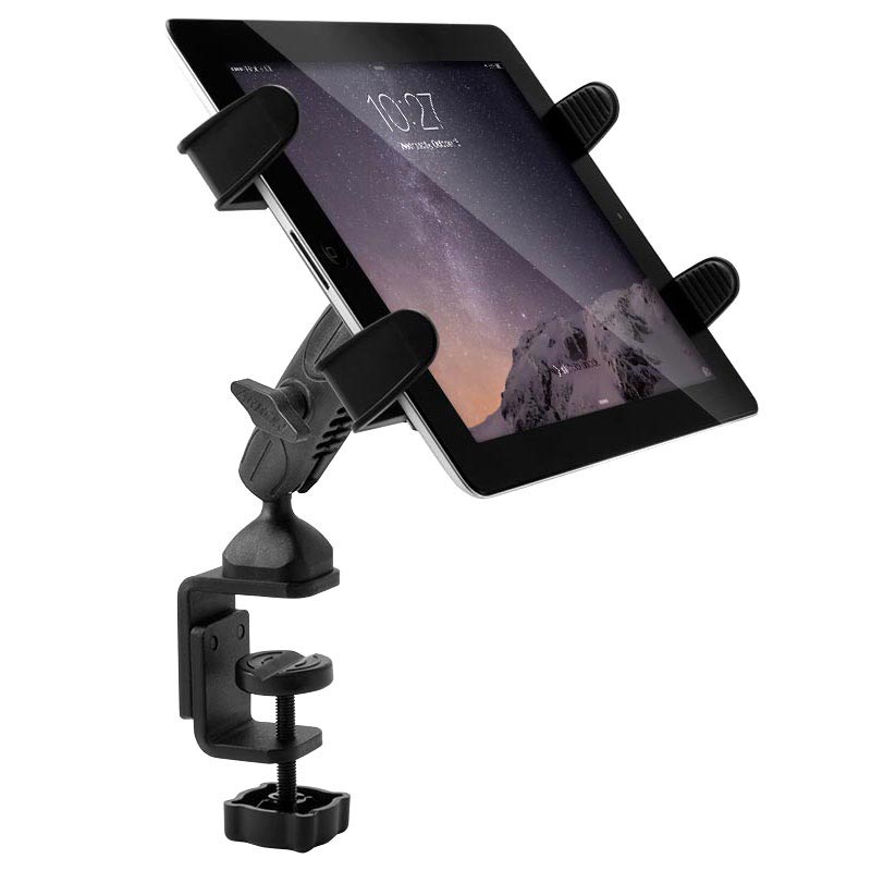 Dieser universelle Tischhalter aus der Arkon Robust Mount-Serie ermöglicht Ihnen, Ihr Tablet an Stativen, Schreibtischen, Karren oder anderen tischähnlichen Oberflächen zu befestigen. Es hat eine integrierte C-Klemme, die einen festen Halt auf 6mm bis 60mm breiten Oberflächen bietet. Die verstellbare Halterung passt für Tablets mit einer Breite von 164mm - 221mm.