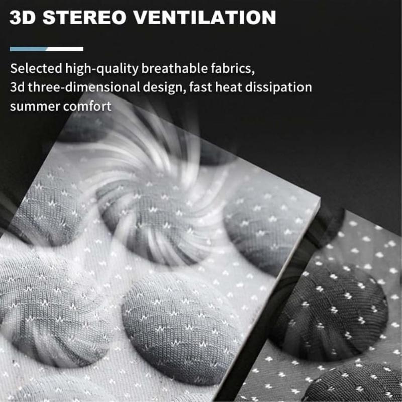 - 3D-Ventilationsstoffe sind so konzipiert, dass sie Mikro-Luftkanäle bilden und den Hitzestau unter dem Körper reduzieren.
