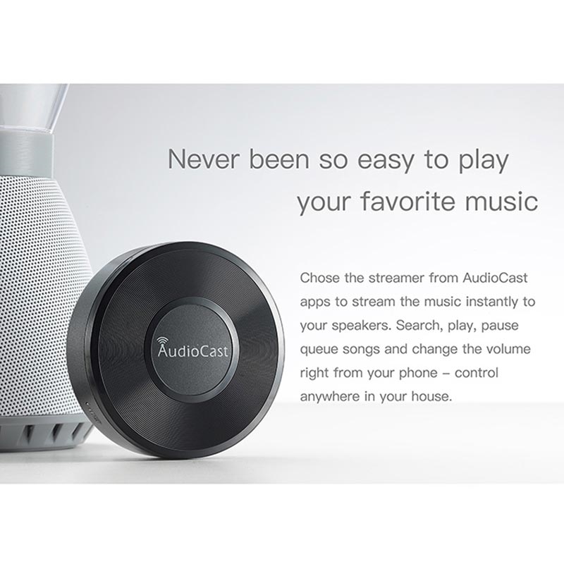 Der AudioCast M5 WiFi Wireless Music Adapter ist eine kompakte Audio-Streaming-Lösung, die an Ihre vorhandenen Lautsprecher angeschlossen wird und diese in ein modernes WiFi-Musiksystem verwandelt. Sobald er angeschlossen ist, können Sie Musik drahtlos von Smartphones, Tablets oder Laptops streamen, ohne auf die begrenzte Bluetooth-Reichweite angewiesen zu sein.