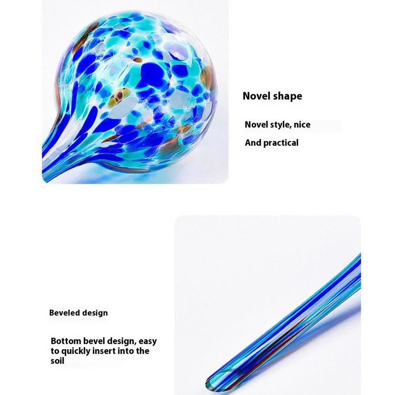 Jede Gießkugel ist aus Glas handgefertigt und verbindet praktische Pflanzenpflege mit eleganter Dekoration. Die farbenfrohe Oberfläche verleiht Blumentöpfen, Pflanzgefäßen und Gartenbehältern eine lebendige Note und fügt sich ganz natürlich in jedes Haus oder jeden Außenbereich ein.