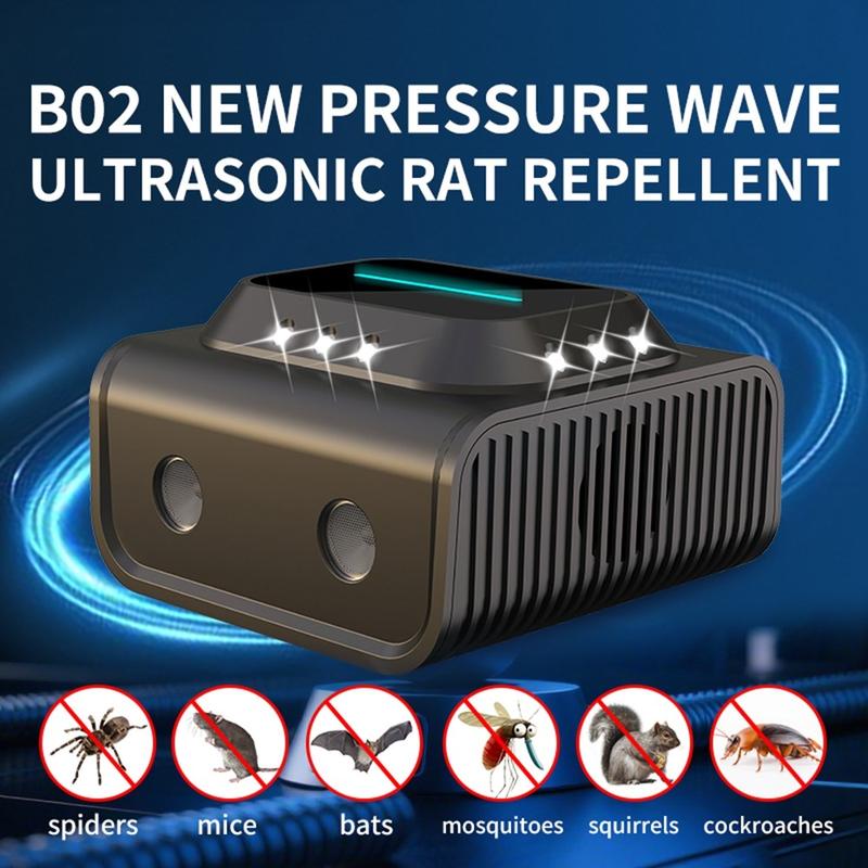 • B02 Ultraschall-Hochleistungs-Nagetiervertreiber / Schädlingsvertreiber mit LED-Stroboskoplicht für Mäuse, Kakerlaken und Insekten