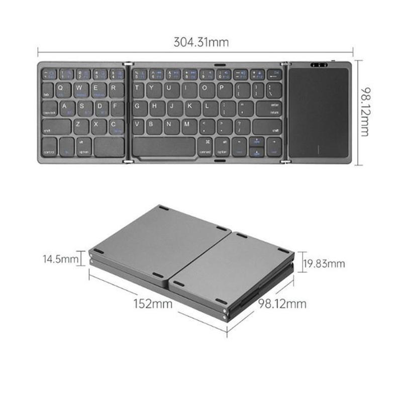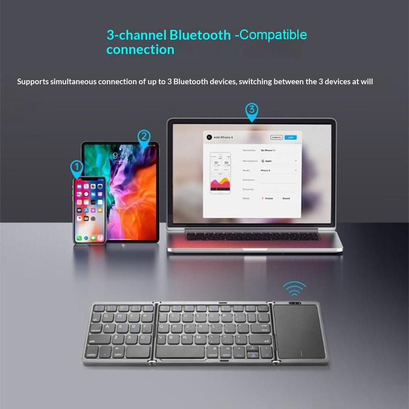 Mit der faltbaren kabellosen Tastatur B089 mit Touchpad können Sie überall bequem arbeiten. Dank ihres schlanken, dreifach faltbaren Designs passt sie problemlos in eine Laptoptasche, während das integrierte Touchpad eine reibungslose Navigation ohne separate Maus ermöglicht. Sie wurde für Smartphones, Tablets und Laptops entwickelt und eignet sich ideal für Reisen, Remote-Arbeit und die tägliche Produktivität.