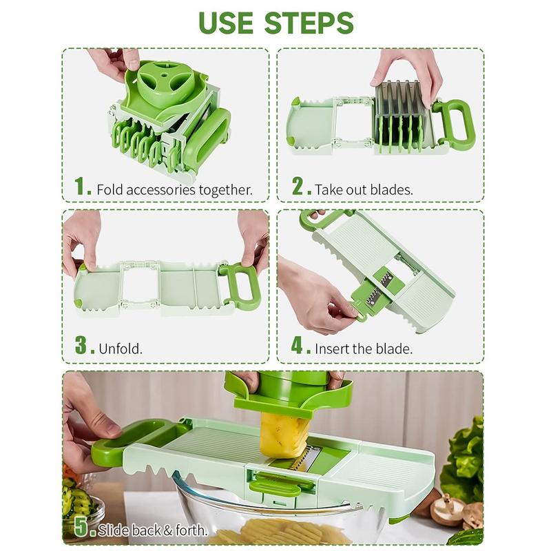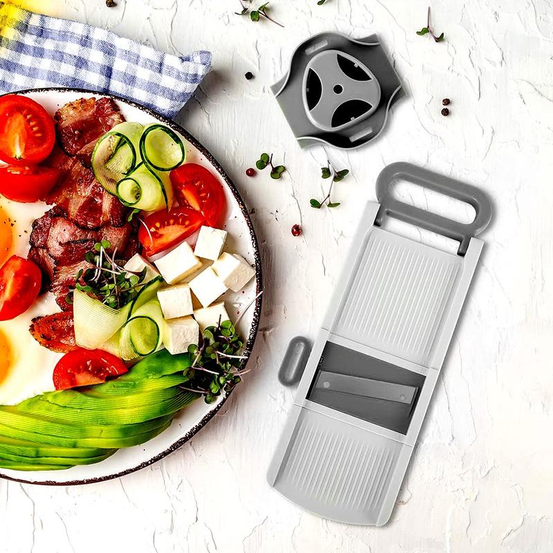 Dieser Mandolinenschneider ersetzt mehrere Küchengeräte durch ein kompaktes, zusammenklappbares Gerät. Die scharfen Klingen aus rostfreiem Stahl, die robuste Konstruktion und die einfache Bedienung machen ihn ideal für Köche, die jeden Tag schnell, gleichmäßig und sicher schneiden wollen. Sie ist leicht zu reinigen, einfach zu verstauen und für den dauerhaften Gebrauch gebaut - eine zuverlässige Ergänzung für jede Küche.