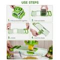 - 6 austauschbare Edelstahlklingen zum Schneiden, Raspeln, Julienneschneiden und für wellenförmige Schnitte