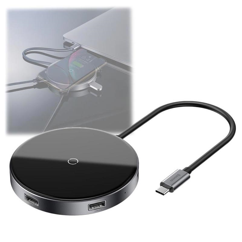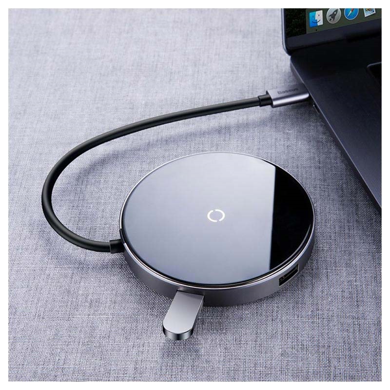 Baseus Circular Mirror Qi Ladegerät und Hub - Typ-C PD, 4x USB