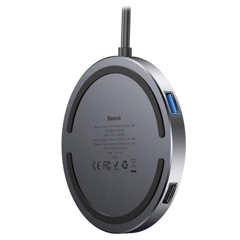 • Baseus Circular Mirror 6-in-1 Qi Ladegerät und Hub mit Typ-C PD, 4 USB Ports - 10W, 60W, 5Gbps, 480Mbps
