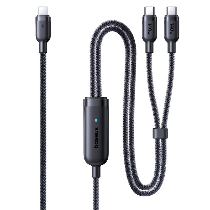 Laden Sie zwei Geräte über ein einziges Kabel mit dem BASEUS Flash 4 2-in-1-Schnellladekabel. Dieses intelligente Ladekabel wurde für moderne USB-C-Geräte entwickelt und vereint hohe Ausgangsleistung, breite Kompatibilität und praktisches Kabelmanagement in einer reisefreundlichen Lösung. Es unterstützt bis zu 140 W für das Laden eines einzelnen Geräts und kann die Leistung gleichzeitig intelligent auf zwei Geräte aufteilen, wodurch es sich ideal für Laptops, Tablets, Smartphones, Handheld-Konsolen und mehr eignet.