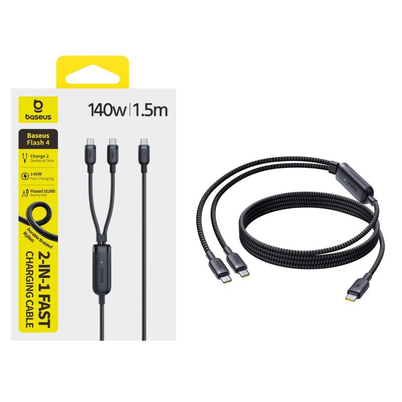 Baseus Flash 4 2-in-1-Schnellladekabel (USB-C auf zwei USB-C), 1.5m/140W - Schwarz
