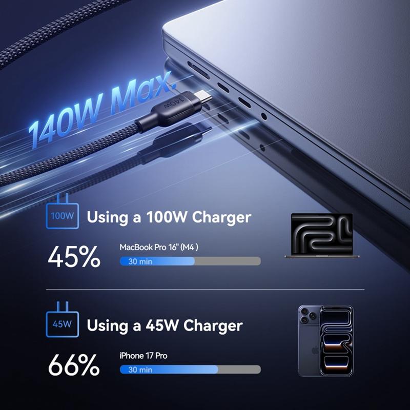 - 140-W-USB-C-Laden wird häufig mit neueren Hochleistungs-Ladestandards für Laptops nach PD 3.1 in Verbindung gebracht