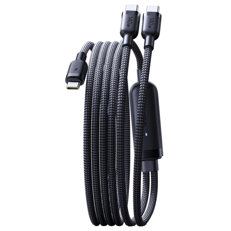 • Baseus Flash 4 2-in-1 USB-C-auf-Dual-USB-C-Schnellladekabel, 1,5 m - PD 3.1, 140 W, Ladekabel für mehrere Geräte mit Kabelhalterung