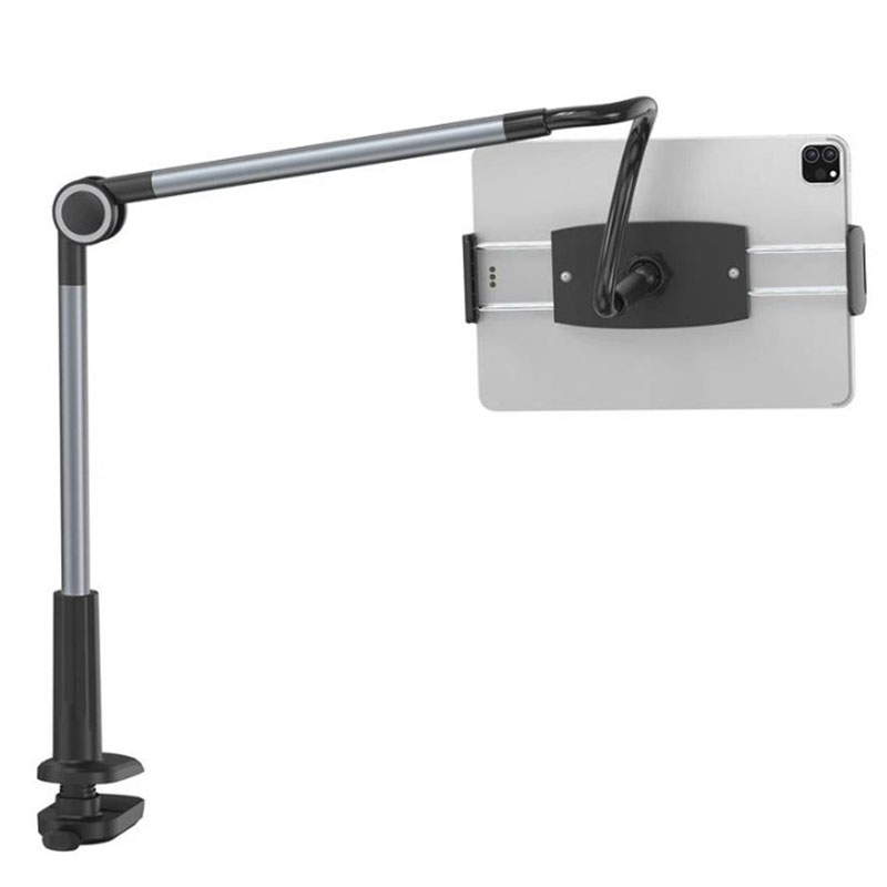 Der Ständer verfügt über eine dreifache Stabilitätsverstärkung. Eine starke Klemme an den Kanten des Geräts schützt es vor dem Herunterfallen, und die Verwendung einer Verlängerungsfeder erweitert die Stärke. Das Befestigungselement beschädigt Ihre Möbel nicht, so dass Sie es bedenkenlos an Arbeitsplatten mit einer Stärke von bis zu 90 mm anbringen können.